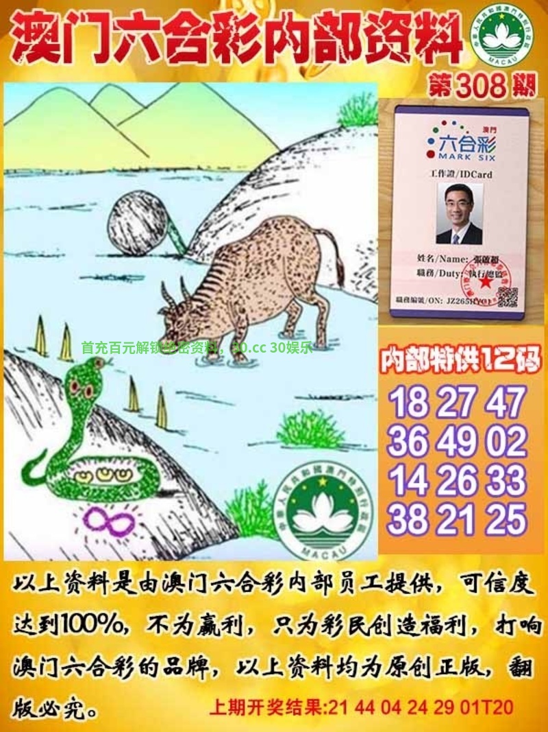 306期:八肖狗龙猪蛇虎鸡猴开:牛17中